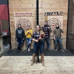Ax throwing: We were there on a Sunday at 6pm. Lots of fun. Pre register to speed things up and arrive early. Antonio was our ax throwing expert and host. He was great and really kept a close eye on the group of 6 of us. He kept the games varied and fun and offered great throwing tips and worked with pretty much everyone so they improved and had more fun. The beers were very reasonable and the menu looked solid. My two critiques would firstly, be the high cost of $30 per person for 1&1/2 hrs. This place has been here awhile but true longevity is about correct price points and great customer experiences. Secondly is the fact that the ax throwing cages are in the same area of the go karts and it is extremely loud. Hearing the people that you are with and hearing your host is extremely difficult. I don't have any real suggestions except to say that where there is a will, there is a way. We were thinking it was going to be its own separate area. That was the main negative comment from the six of us. Again: try ax throwing once if you haven't.